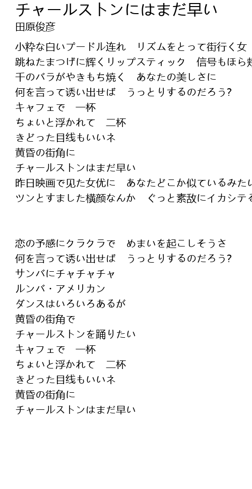 | 歌曲 | チャールストンにはまだ早い |