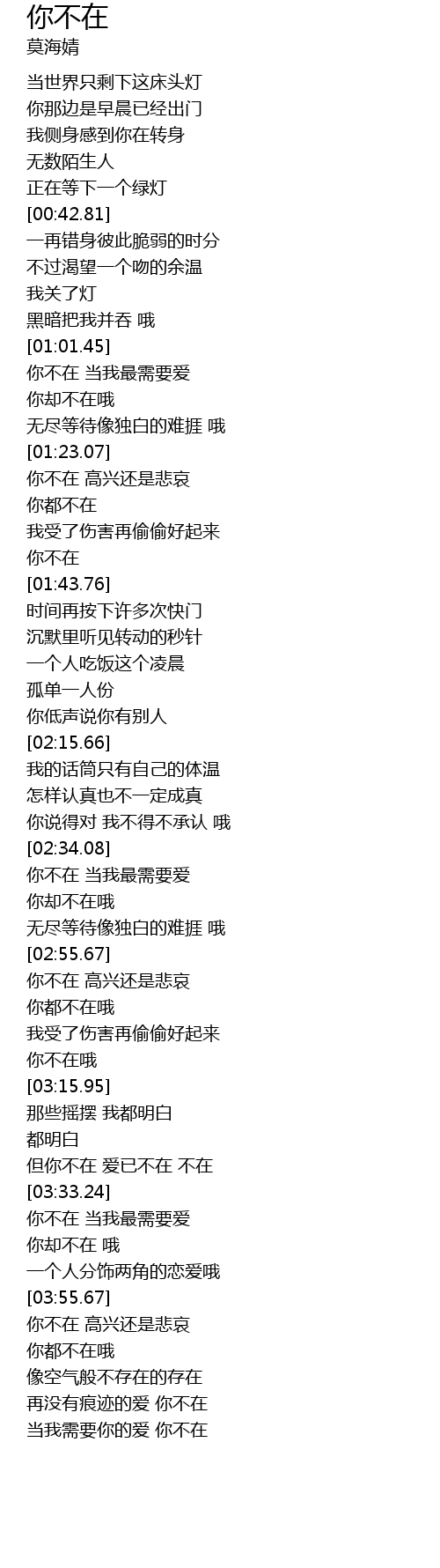 | [04:11.52] | 再没有痕迹的爱 你不在 |