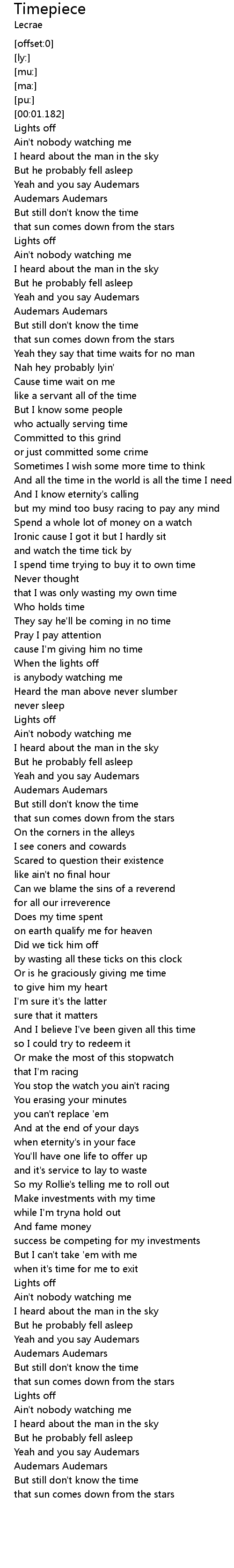 | [01:17.904] | Spend a whole lot of money on a watch |