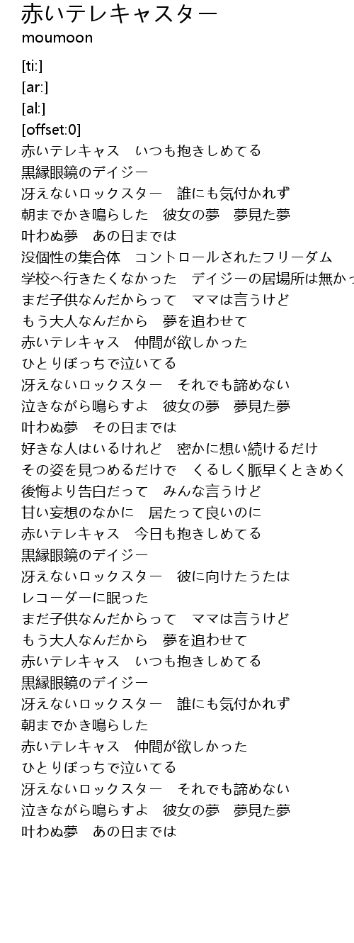 | [02:22.00] | 赤いテレキャス 今日も抱きしめてる |