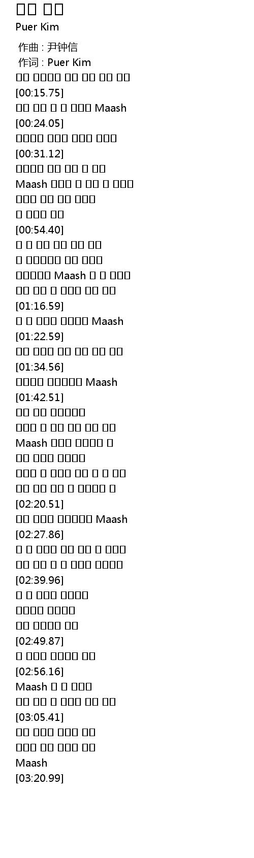作词 : Puer Kim |