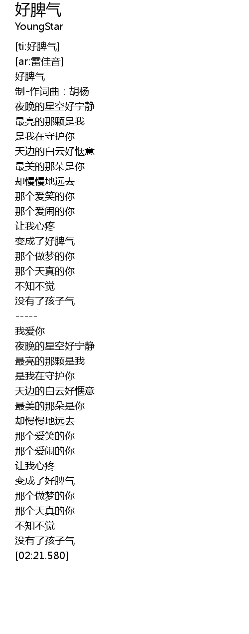 | [00:01.874] | 好脾气 |