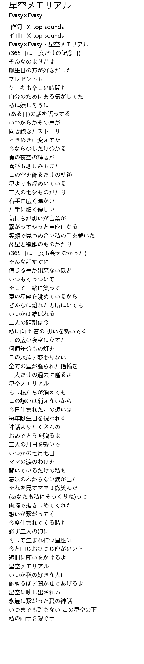 | [00:00.04] | Daisy×Daisy - 星空メモリアル |