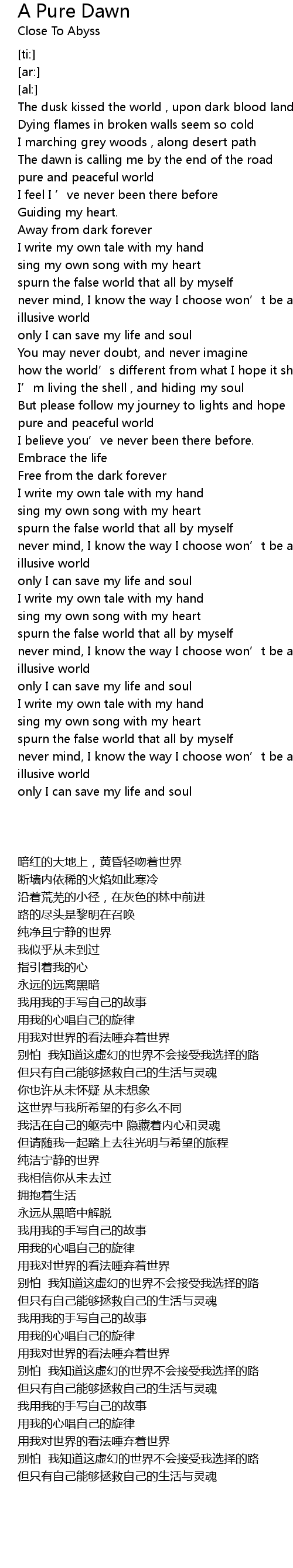 | [00:52.73] | The dawn is calling me by the end of the road |