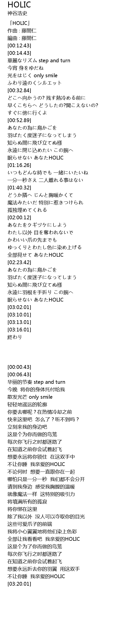 | [00:00.43] | 「HOLIC」 |