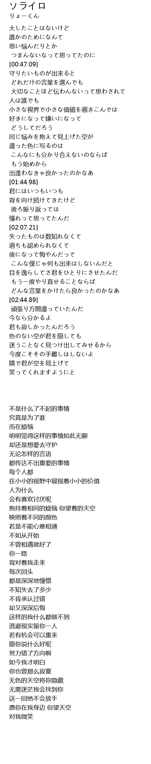 | [02:38.50] | どんな言葉をかけたら良かったのかなあ |