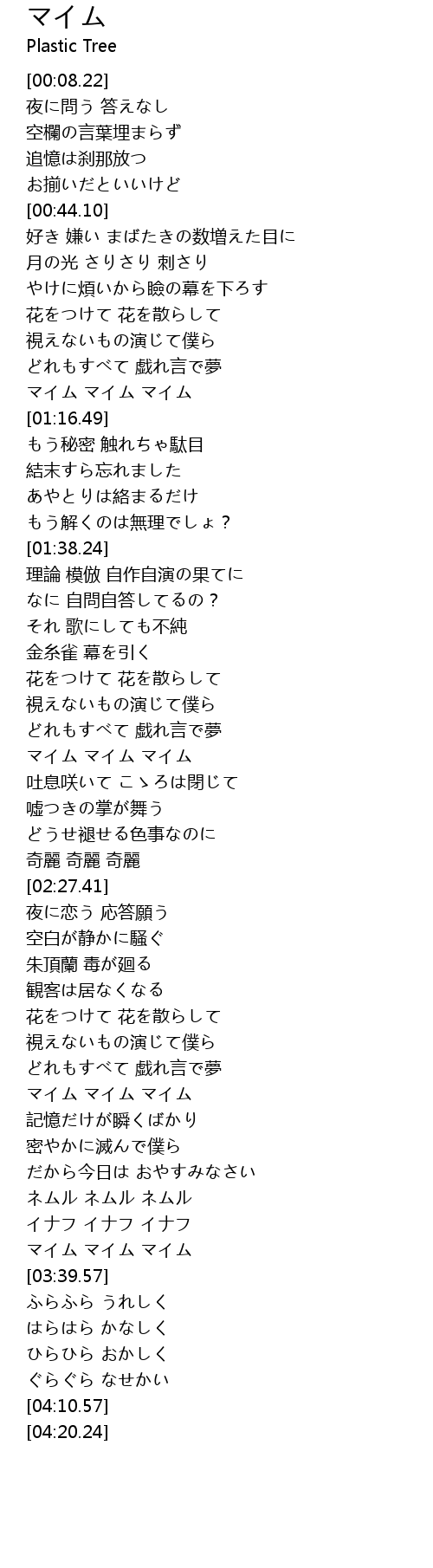 | [00:54.64] | やけに煩いから瞼の幕を下ろす |
