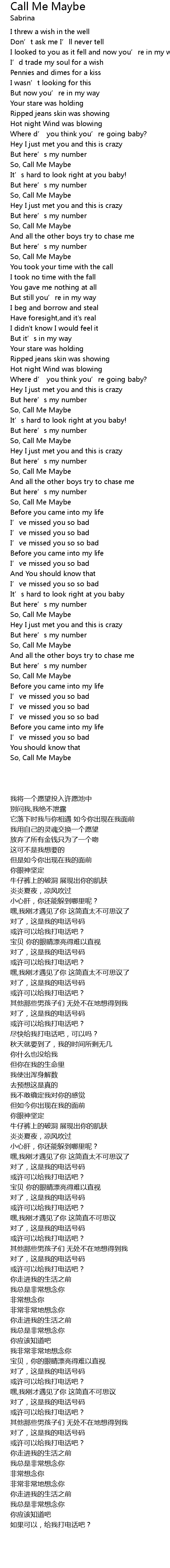 | [03:02.00] | So, Call Me Maybe |