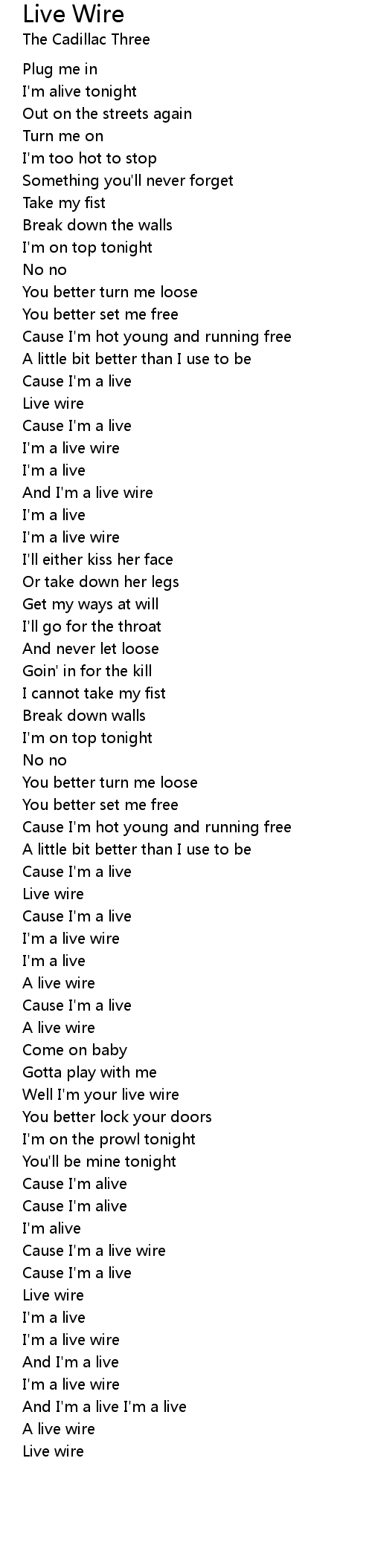 Cause I'm a live wire |
