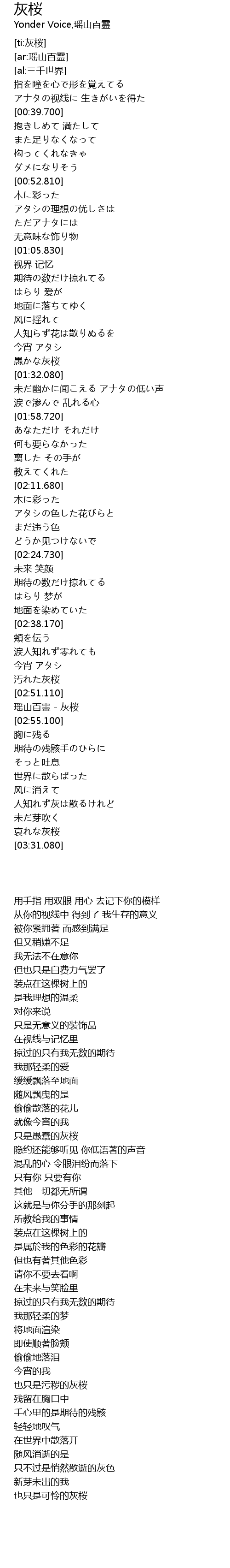 | [02:52.270] | 瑶山百霊 - 灰桜 |