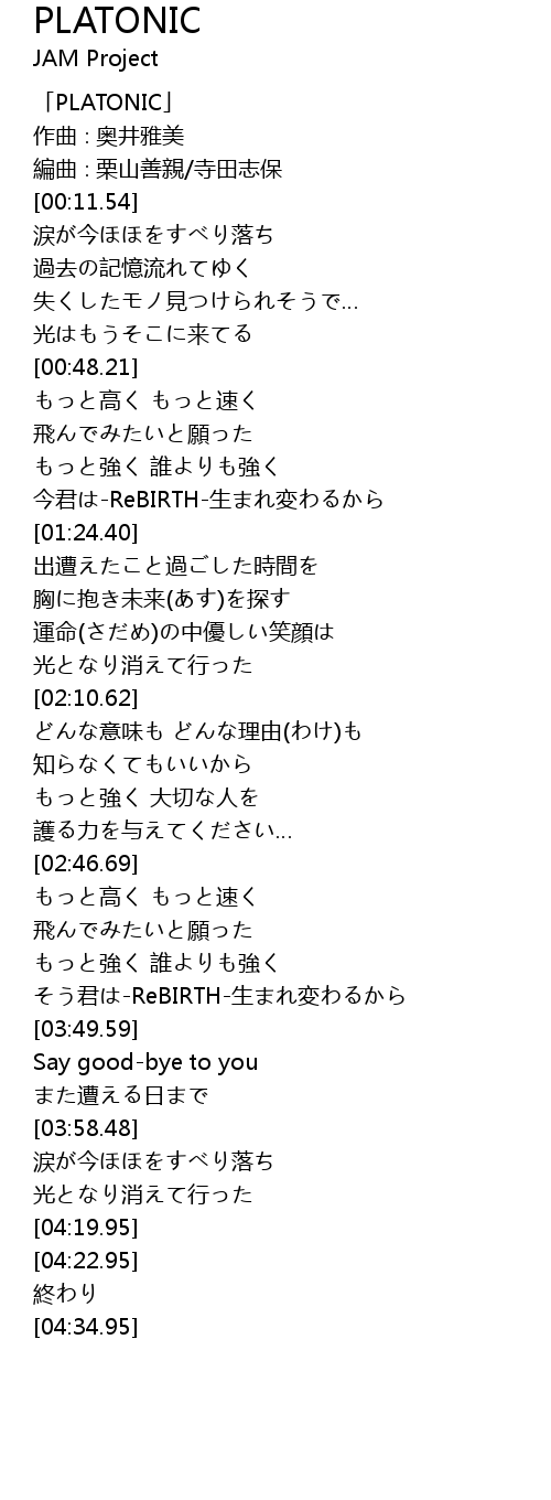 | [00:00.54] | 「PLATONIC」 |