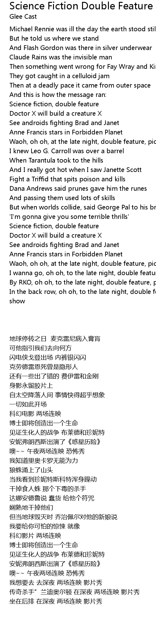 | 歌曲 | Science Fiction Double Feature |
