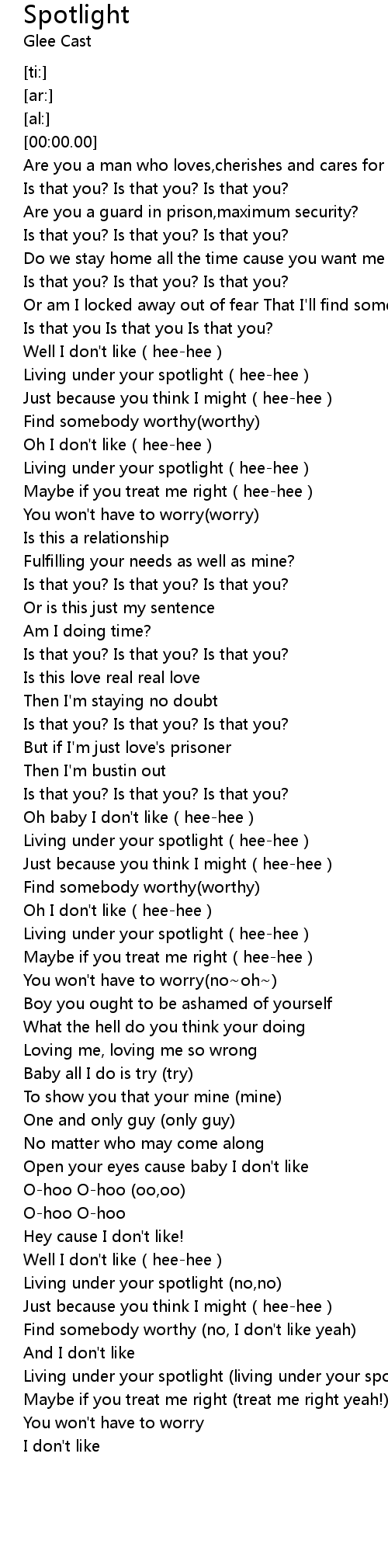 | [00:54.72] | Living under your spotlight(hee-hee) |