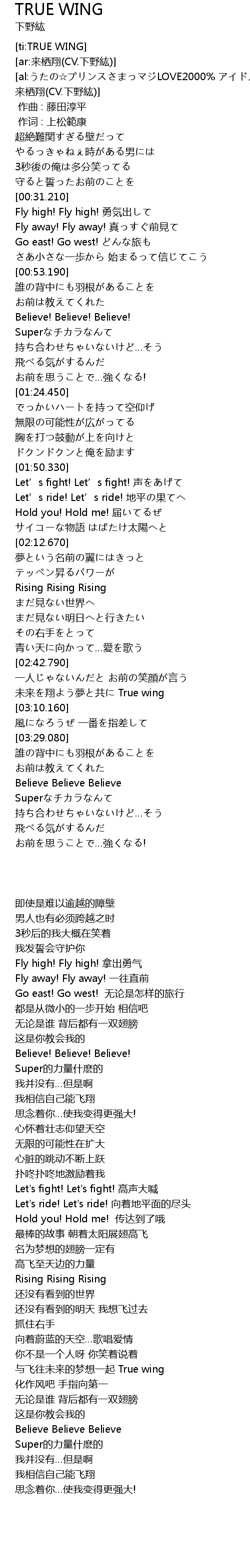 | [03:00.550] | 未来を翔よう夢と共に True wing |