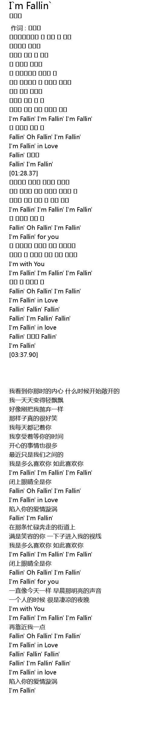| [02:00.57] | I'm Fallin' I'm Fallin' I'm Fallin' |
