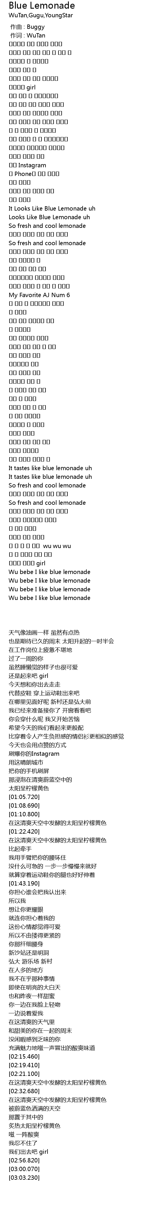 | [03:00.070] | Wu bebe I like blue lemonade |