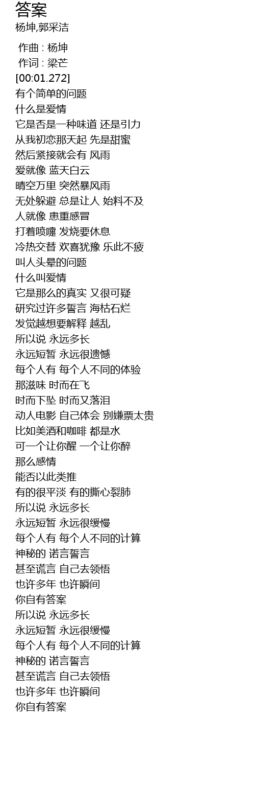 | [00:12.925] | yǒu gè jiǎn dān de wèn tí |