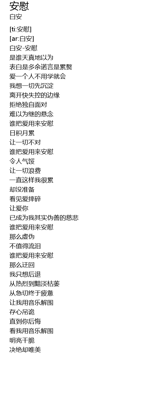 | [00:51.445] | shuí bǎ ài yòng lái ān wèi |
