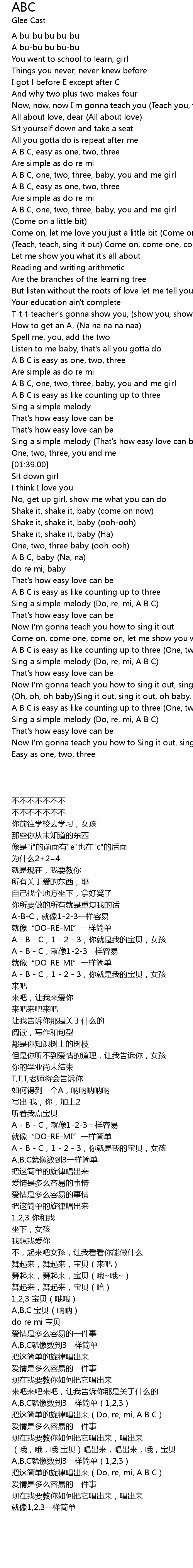 A B C, one, two, three, baby, you and me girl |