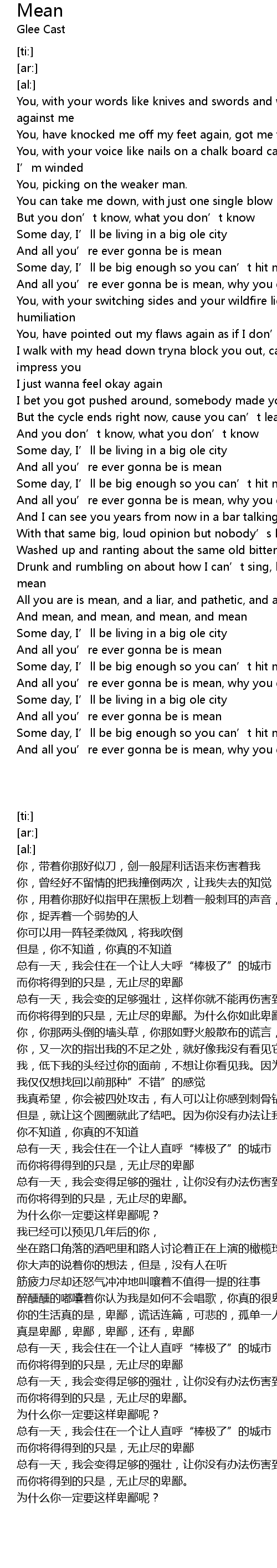 | [02:54.74] | And mean, and mean, and mean, and mean |