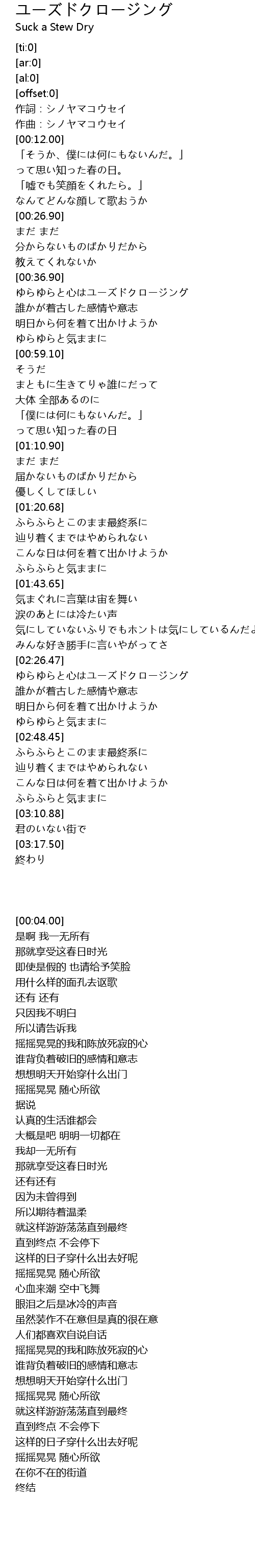 | [02:26.59] | ゆらゆらと心はユーズドクロージング |