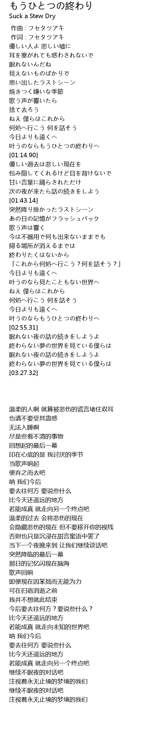 | [02:47.58] | 叶うのならもうひとつの終わりへ |