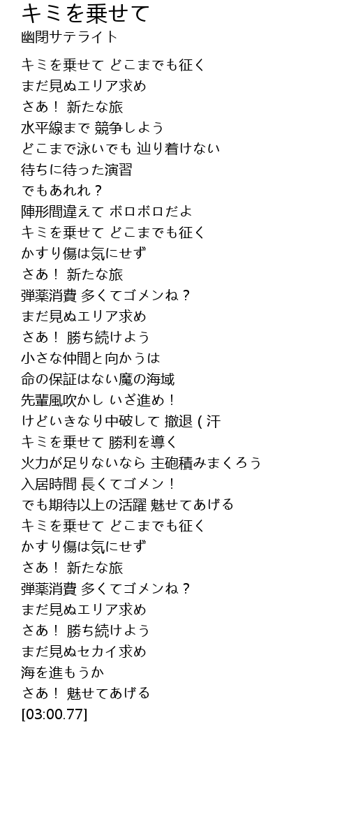 | [00:49.26] | キミを乗せて どこまでも征く |