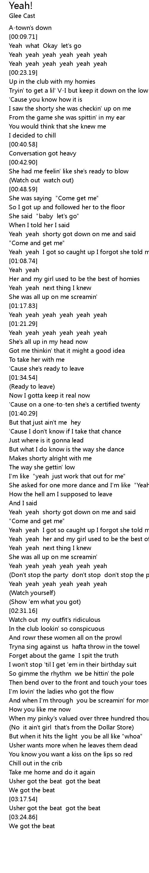 Usher got the beat got the beat |