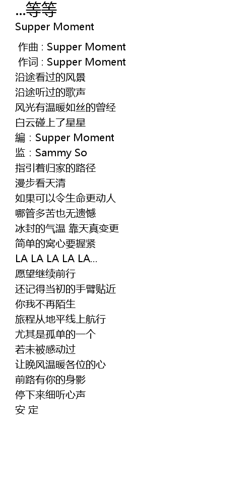 | [00:01.00] | 作词 : Supper Moment |