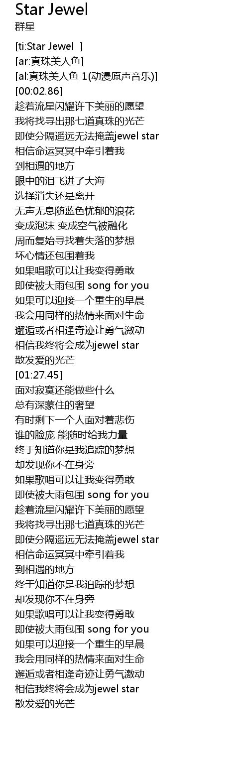 | [02:16.86] | 即使分隔遥远无法掩盖jewel star |