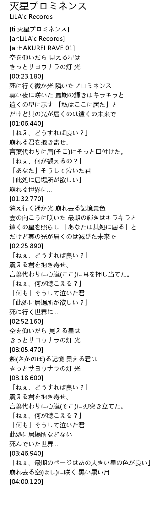 | [03:47.310] | 「ねぇ、最期のページはあの大きい星の色が良い」 |