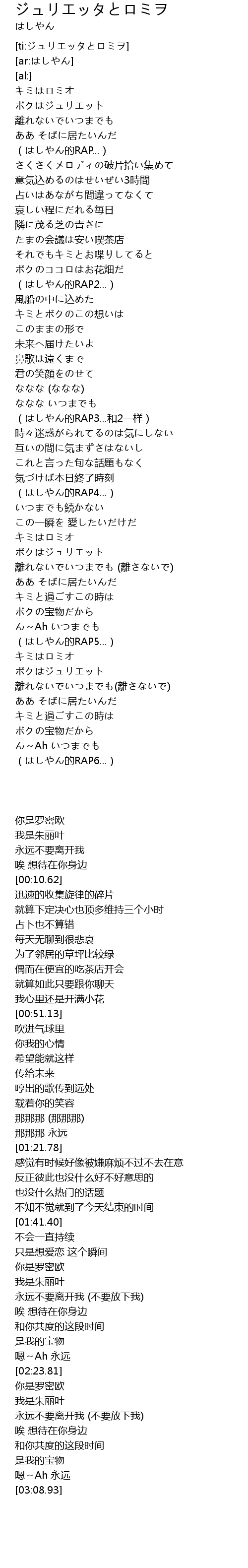 | [02:03.73] | ボクはジュリエット |