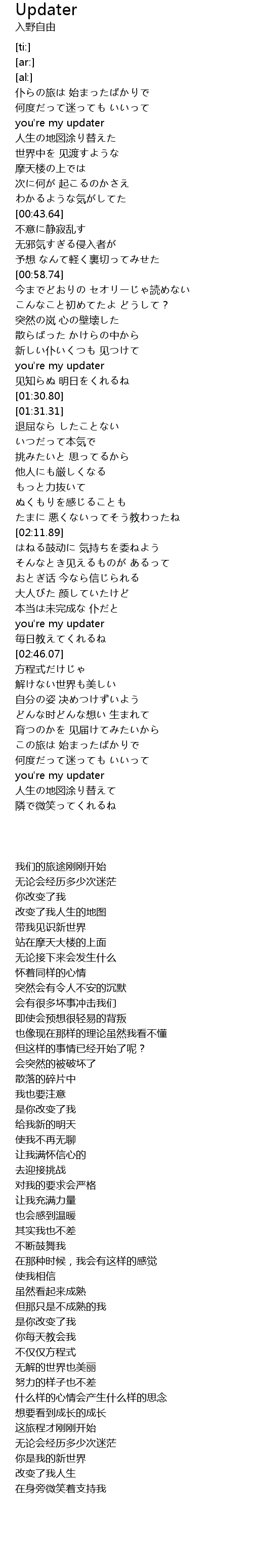 | [00:01.66] | 仆らの旅は 始まったばかりで |