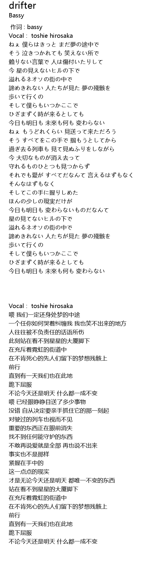 | [00:40.98] | そう 泣きつかれても 笑えない所で |