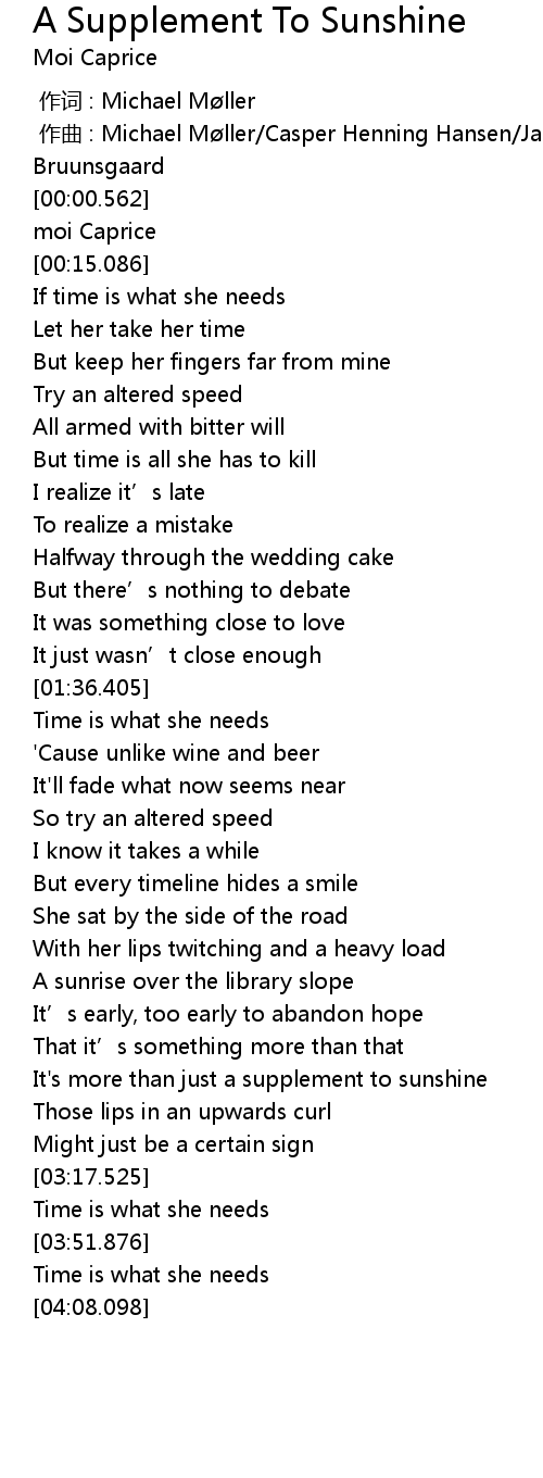 | 歌曲 | A Supplement To Sunshine |