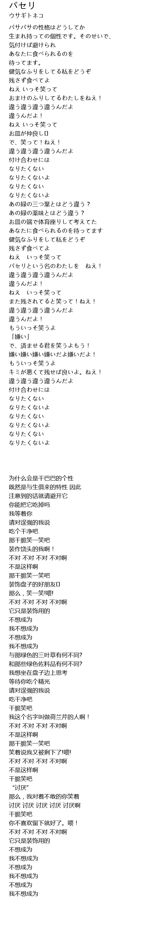 | [02:53.16] | パセリという名のわたしを ねえ! |