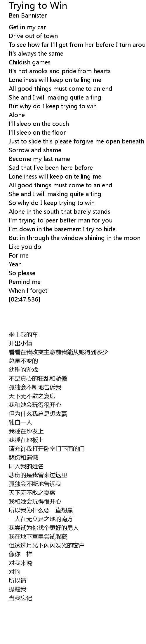 So why do I keep trying to win |