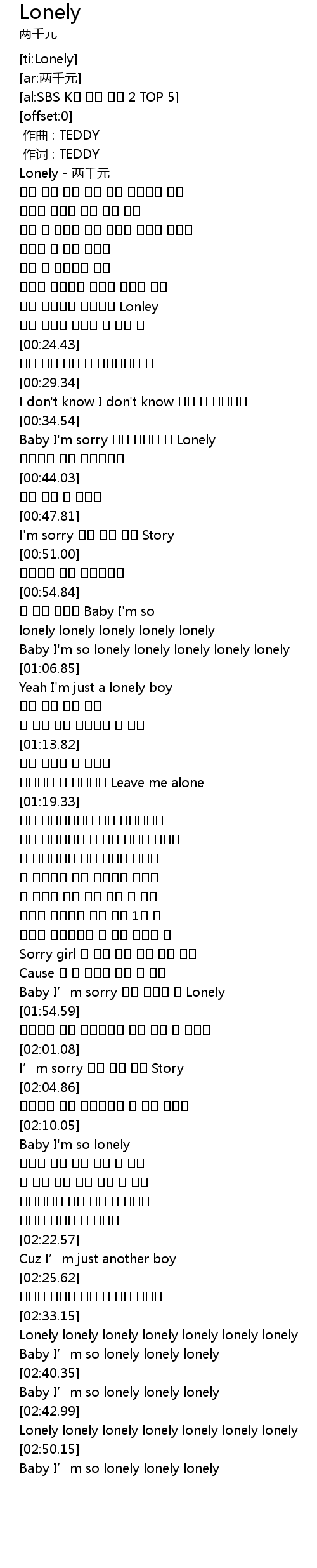 | [02:43.51] | Lonely lonely lonely lonely lonely lonely lonely |