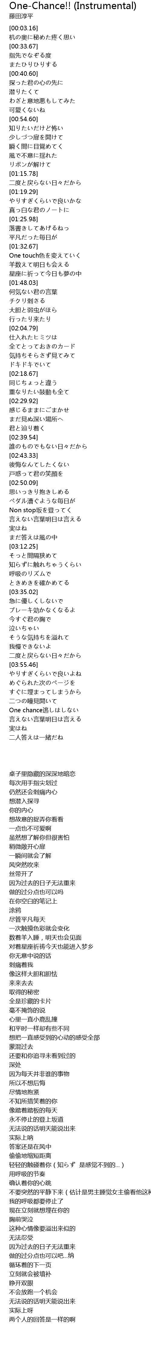 | [04:09.42] | One chance逃しはしない |