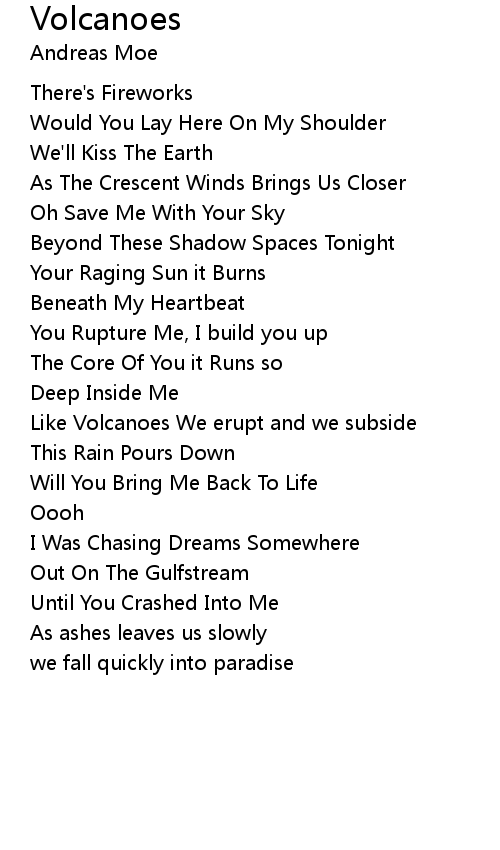 Like Volcanoes We erupt and we subside |