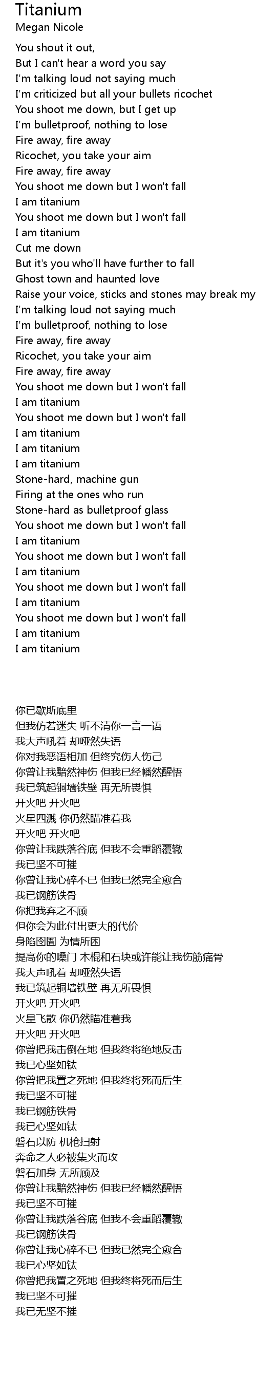 You shoot me down but I won't fall |