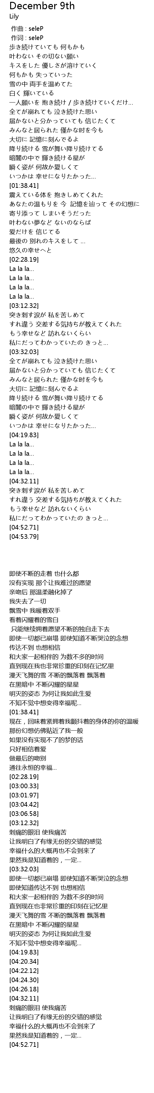 | [04:04.06] | 降り続ける 雪が舞い降り続けてる |