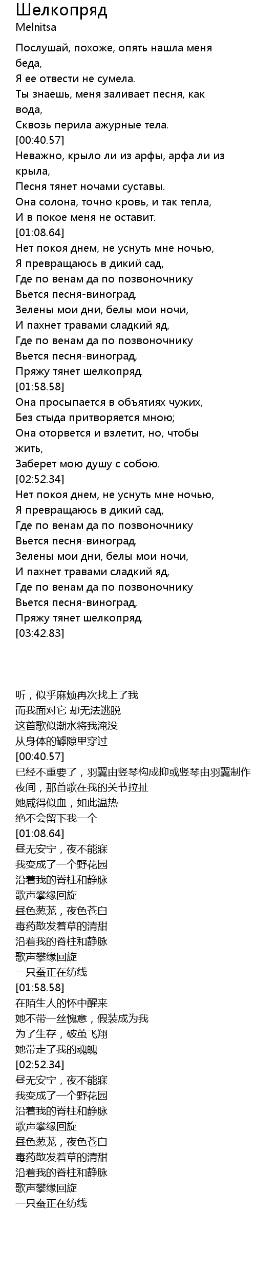 | 歌曲 | Шелкопряд |