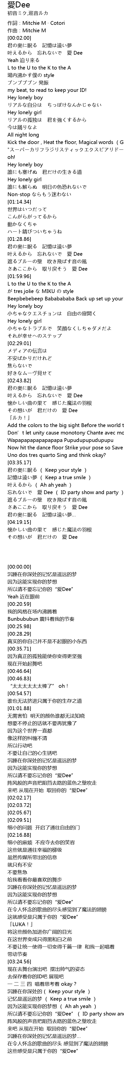 | [02:53.54] | 因为这能实现你的梦想 所以请不要忘记你的“爱Dee” |