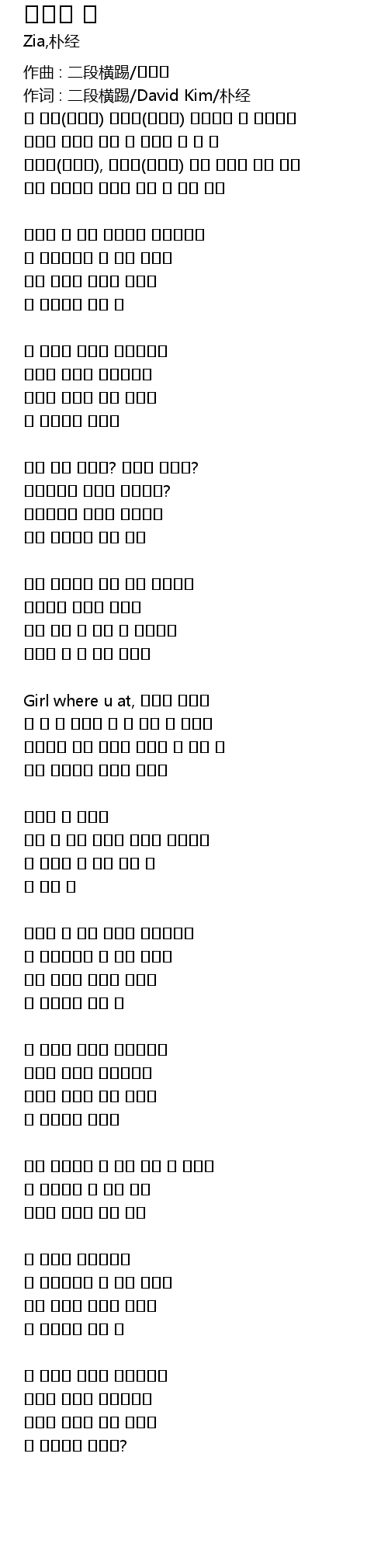 | 作词 : 二段横踢/David Kim/朴经 | |