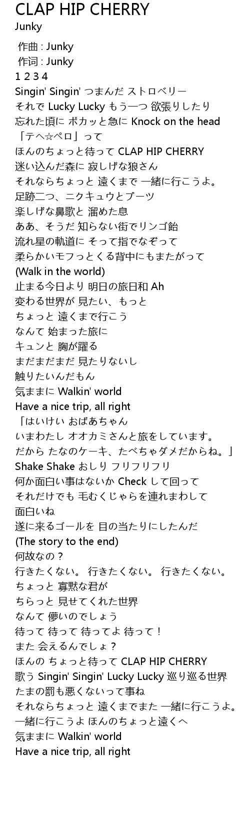 | [00:19.42] | ほんのちょっと待って CLAP HIP CHERRY |