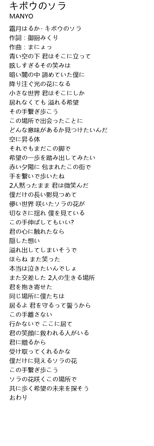 | [00:01.119] | 霜月はるか- キボウのソラ |