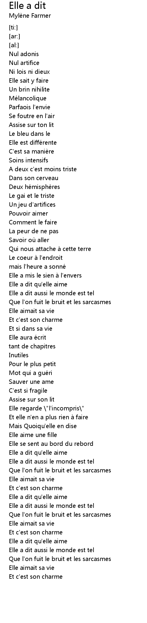 | [03:22.63] | Elle a dit aussi le monde est tel |