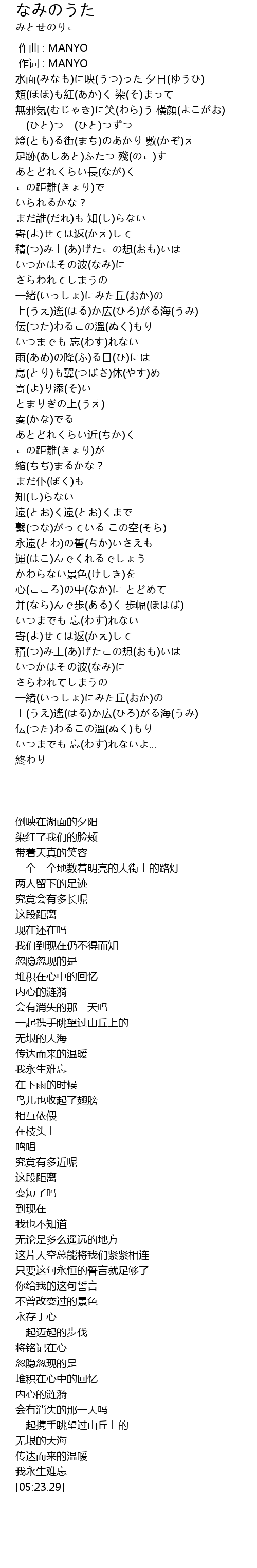 | [05:12.70] | いつまでも 忘(わす)れないよ… |