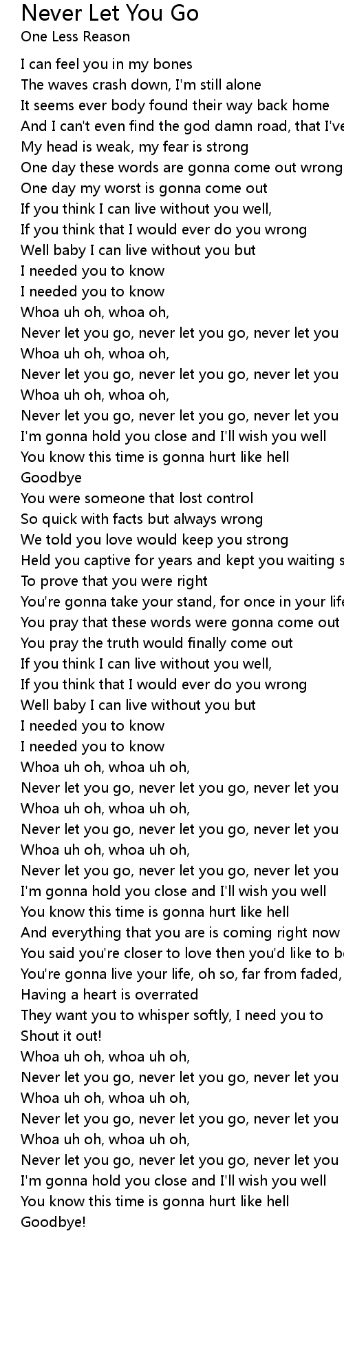Never Let You Go 歌词